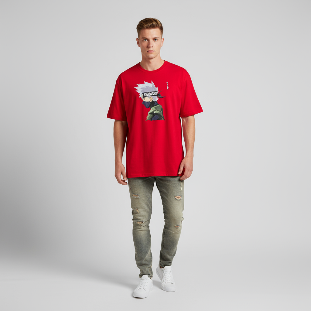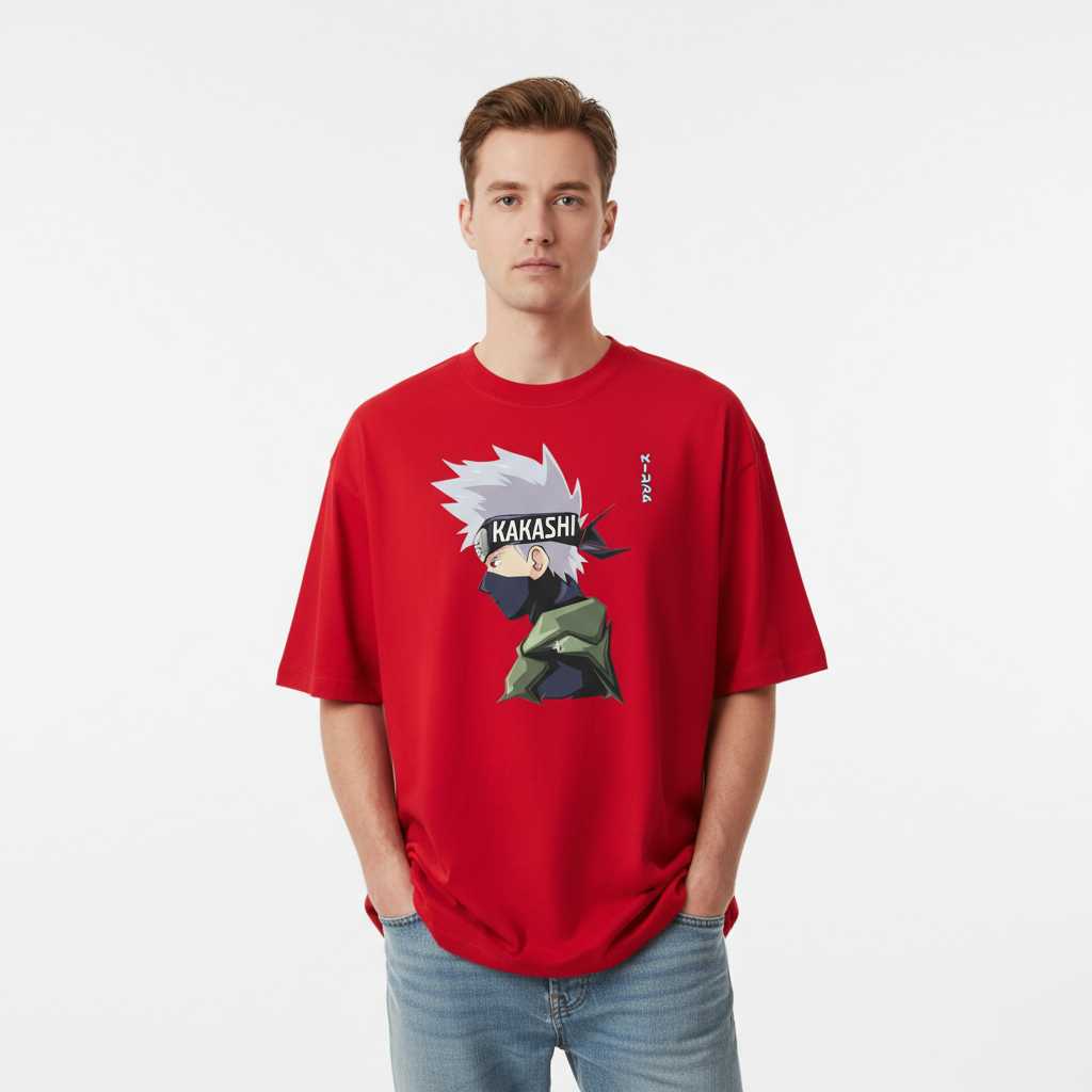 Copycat Sensei Kakashi LavaRed Oversized T‑Shirt — Silent Power, Bold Spirit
