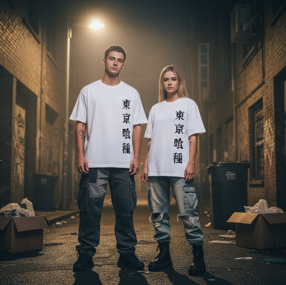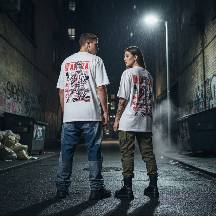 Fit: The Graffiti Ronin White T-shirt offers a contemporary unisex oversized fit with dropped shoulders and extended length, delivering a relaxed yet striking silhouette perfect for urban streetwear.
