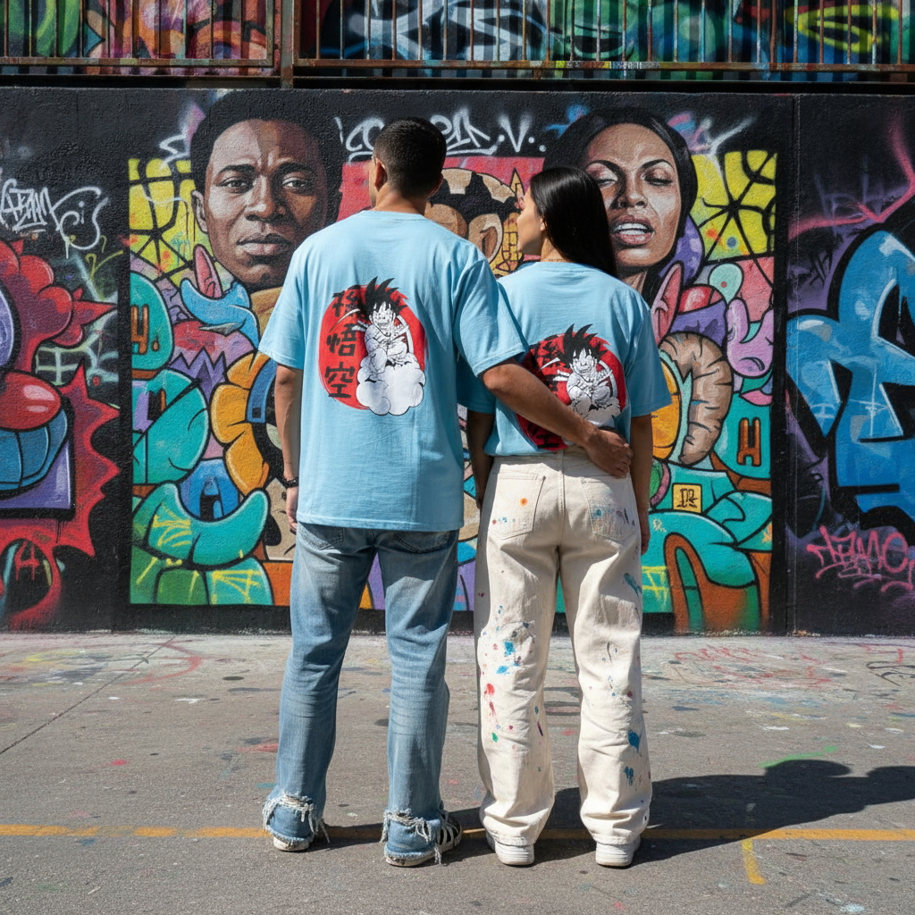 Fit: The Nimbus Kid Goku Sage-Blue T-shirt features a relaxed unisex oversized fit with dropped shoulders and extended length, crafting an effortless, streetwise silhouette infused with anime-inspired spirit and power.