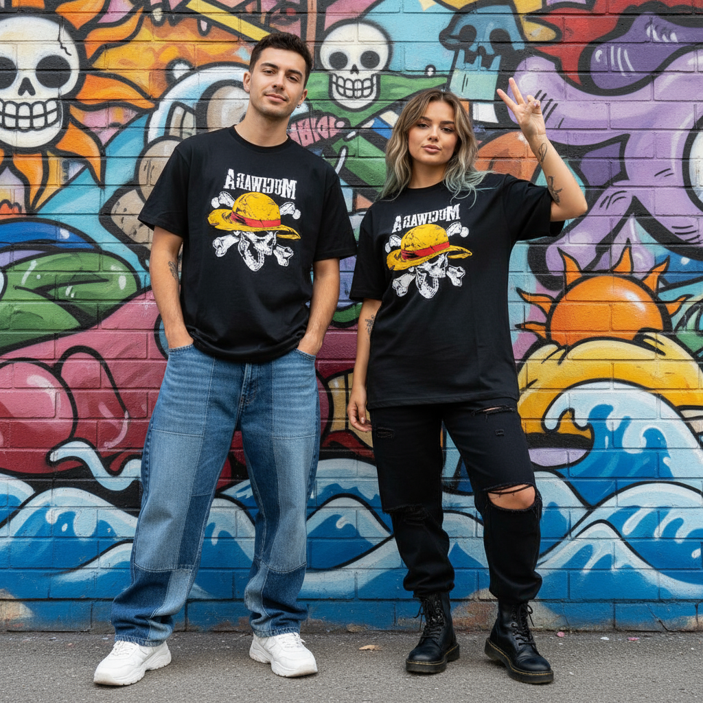 Fit: The Pirate King Tee VantaBlack commands presence with its unisex oversized fit, dropped shoulders, and extended length — striking the perfect balance between relaxed comfort and urban street style dominance.
