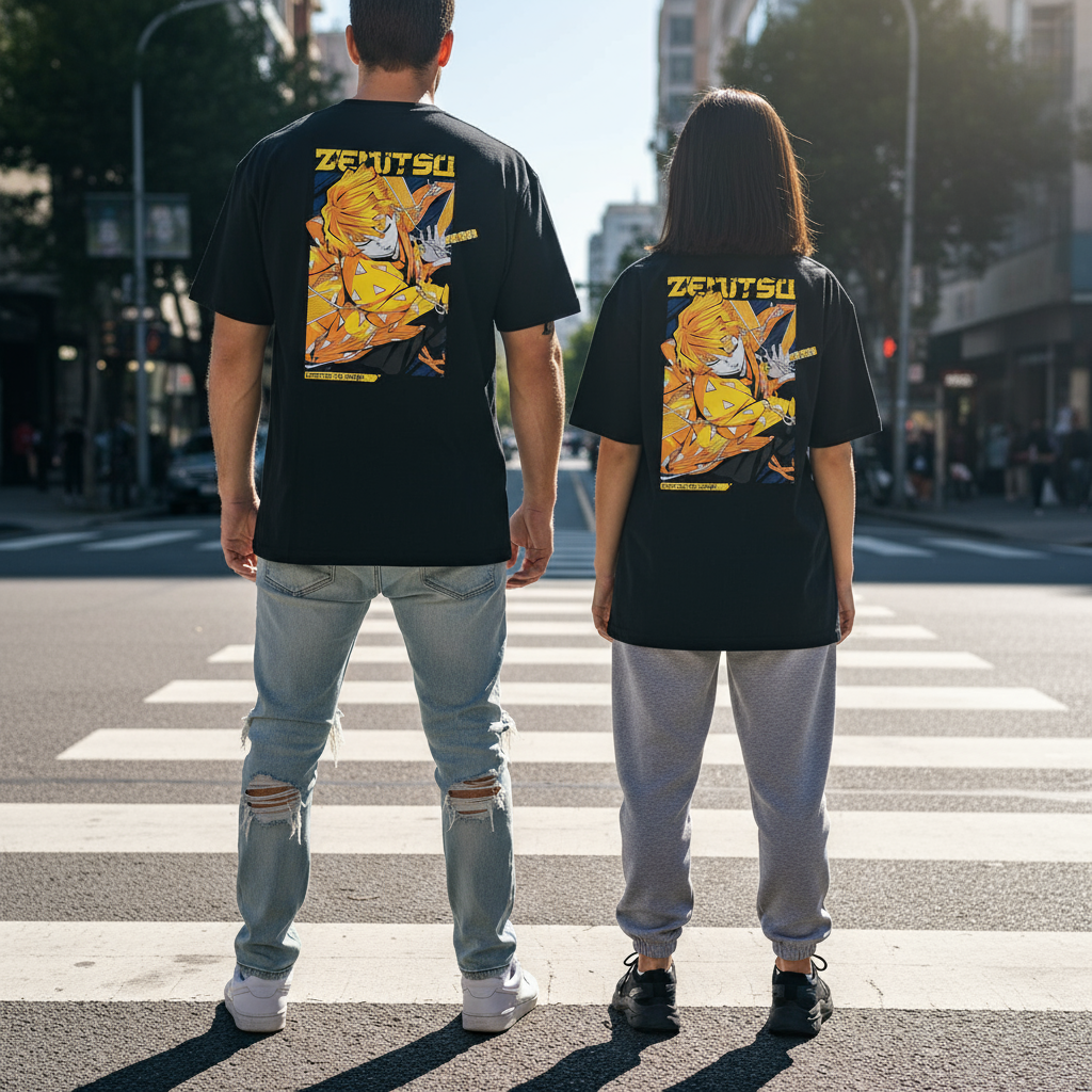 Elevate and electrify your wardrobe with the Thunder Flash Zenitsu Oversized Tee, designed for anime fans and streetwear aficionados who demand premium quality and standout style.