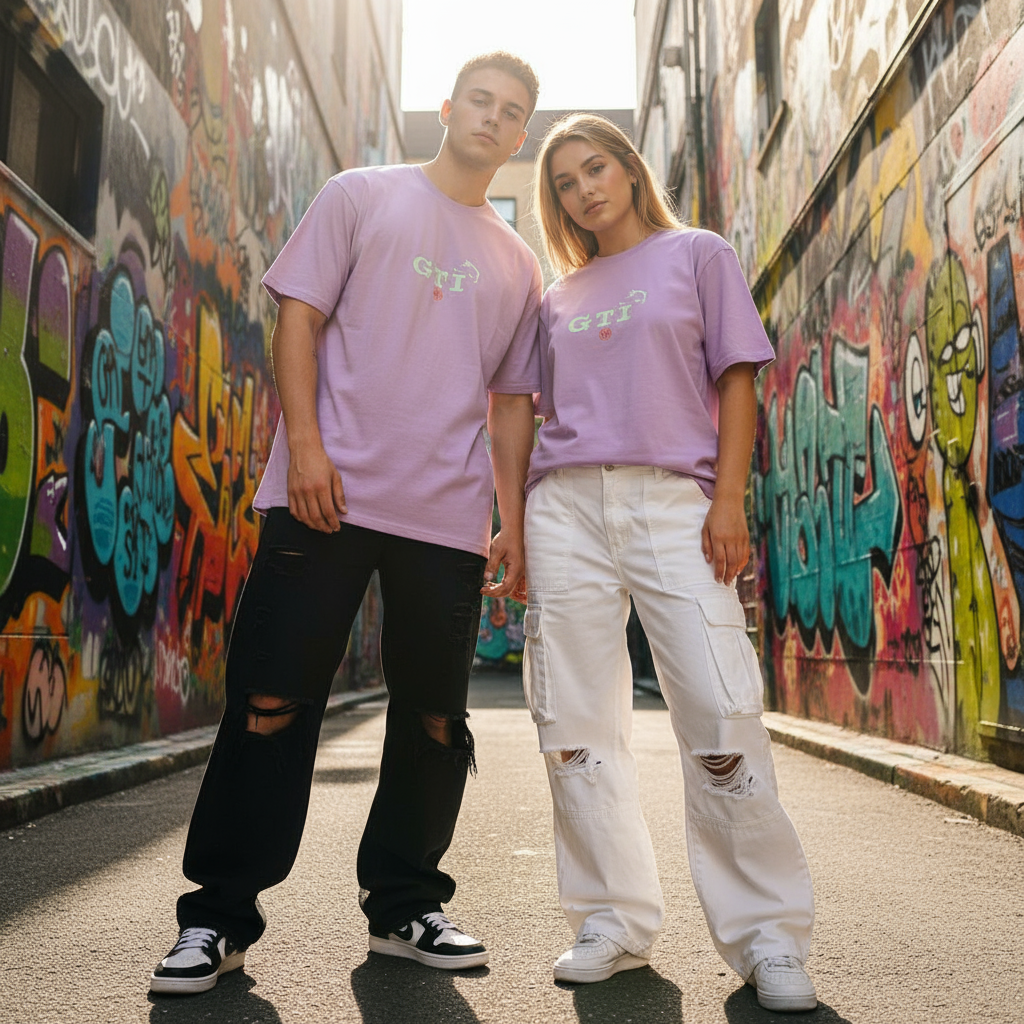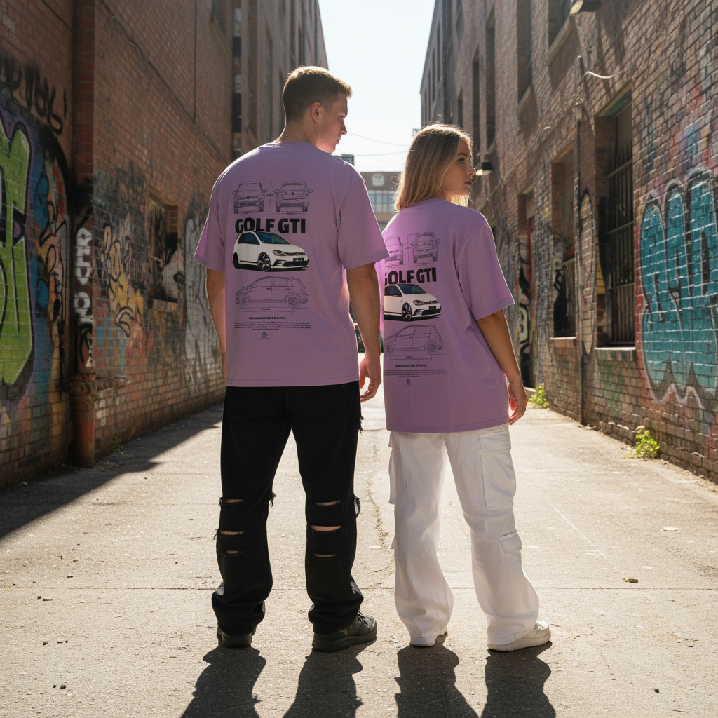 Fit: The Turbo Sketch GTI Lavender T-shirt offers a relaxed unisex oversized fit with dropped shoulders and added length for a modern, effortlessly cool silhouette.